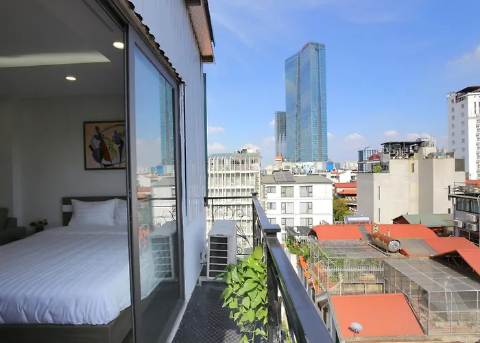 パティオの景色を見渡す部屋10室のSumitomo9 Apartments & Hotel - Alley 58 Dao Tan ハノイ市は、ハノイ貿易大学から徒歩で20分くらいです。 Lotte Department Storeほんの数分に位置するこのアパートには、リラックスしながら都市の景色を楽しめるテラスがあります。